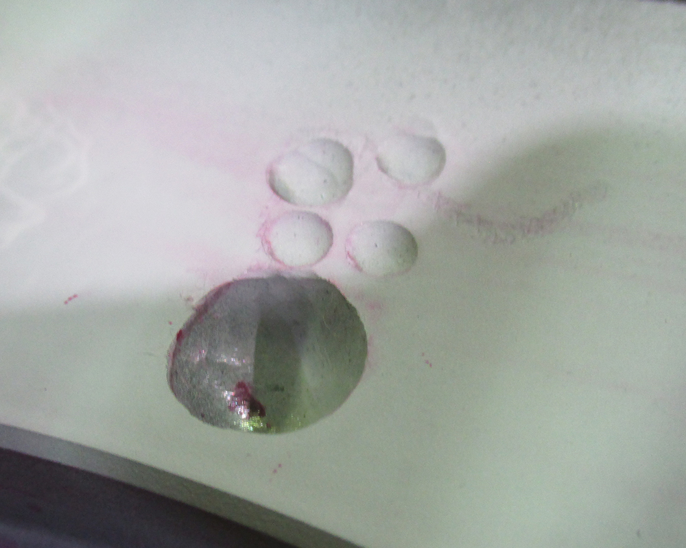 局所熱で割れる製品のため超硬ロータリーにて欠損の除去