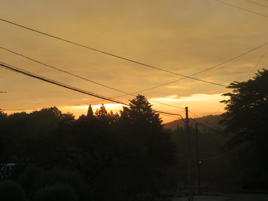 昨夜雨が降ったが朝には真っ赤な太陽が昇って来て、今日も危険な猛暑日が予想されている。