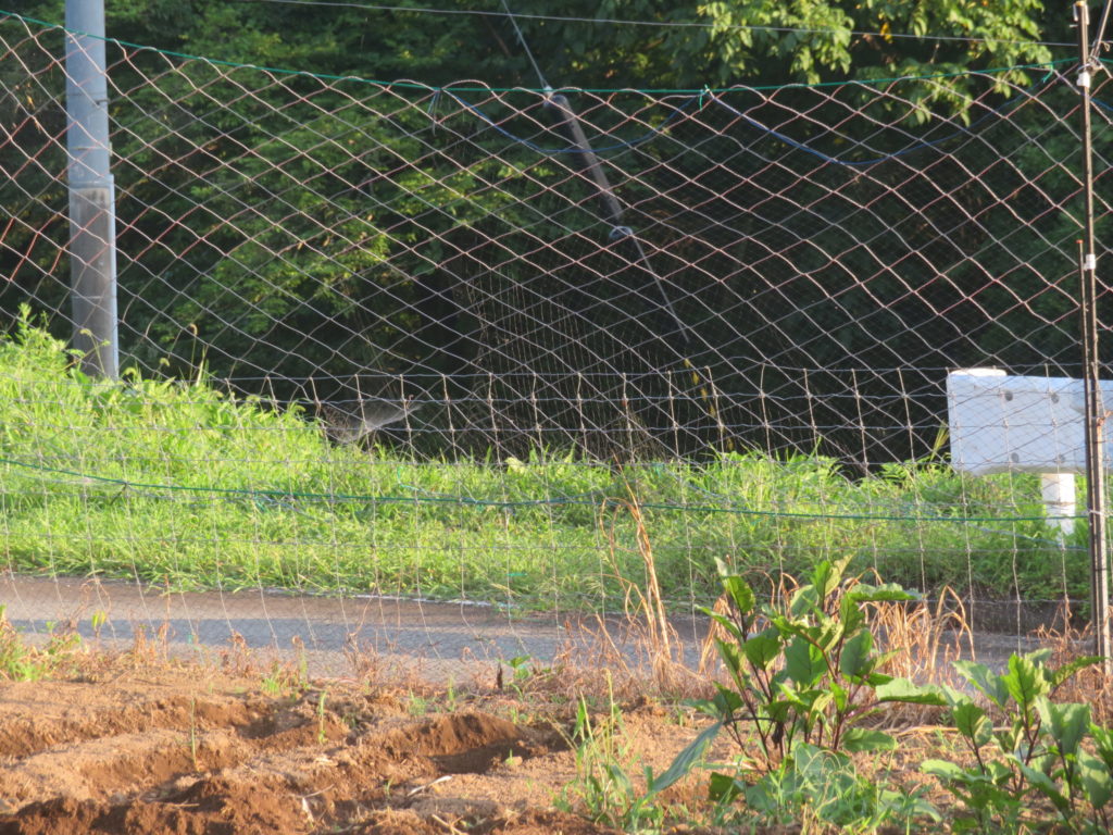 昨日は、僅かに残ったトウモロコシにネットを張って進入防止を図った、今朝までに侵入した形跡は無く順調なので今日は全て収穫してしまう予定だ。