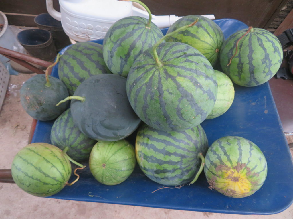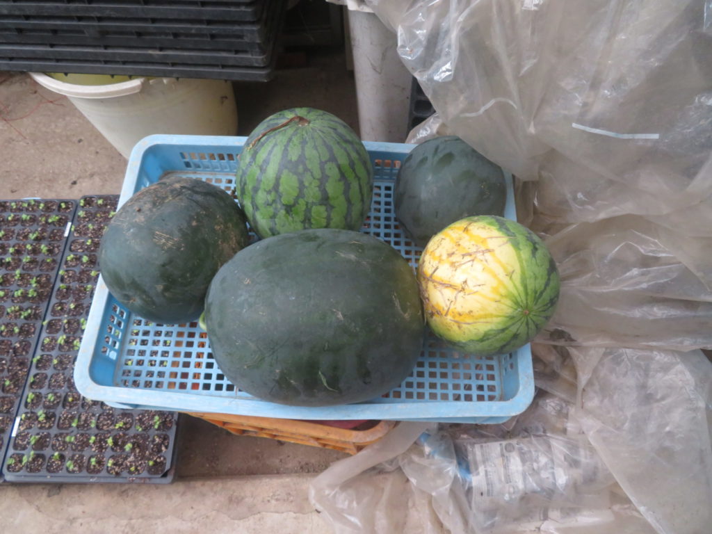 先週、雨が降る予報が出ていたのでスイカの収穫をした。