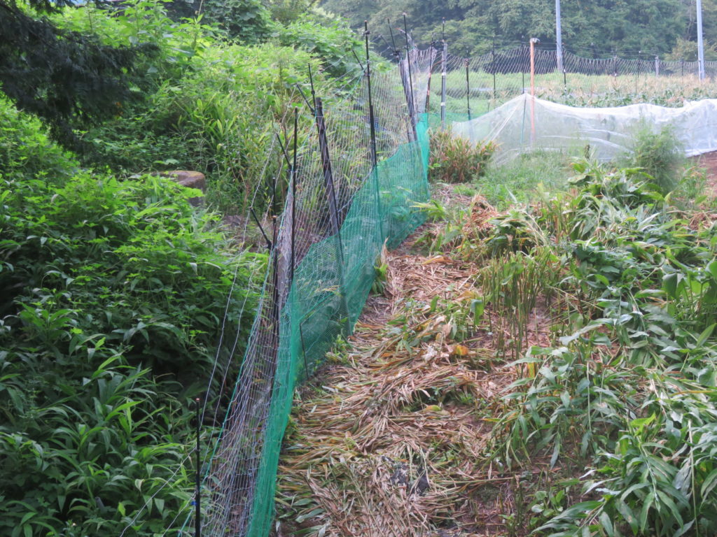 トウモロコシは全て収穫してしまったが、わざとネットは張ったままにして猿の侵入を監視していたら昨日も又一匹の知恵猿が侵入していてネットが垂れ下がっていた。