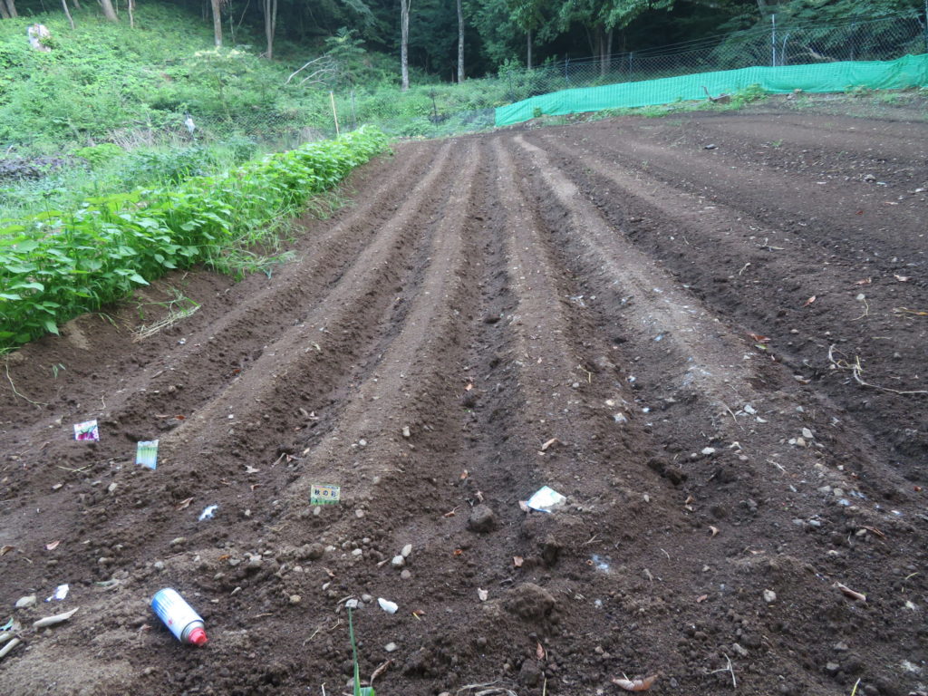 上の畑には5列もの大量に大根を蒔いてみたが発芽はまだ確認されていないが上手く発芽すれば大量の大根が収穫出来るので社員に配りたい。