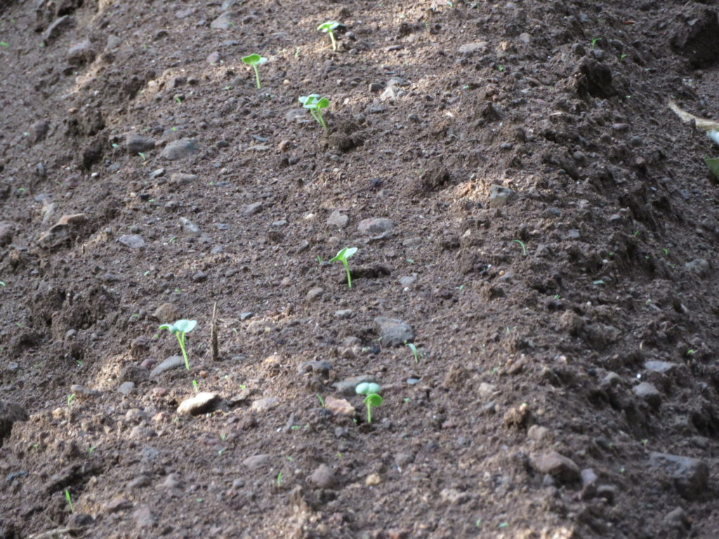 土曜日に種蒔き機のゴンベイで蒔いた大根が発芽して来た。