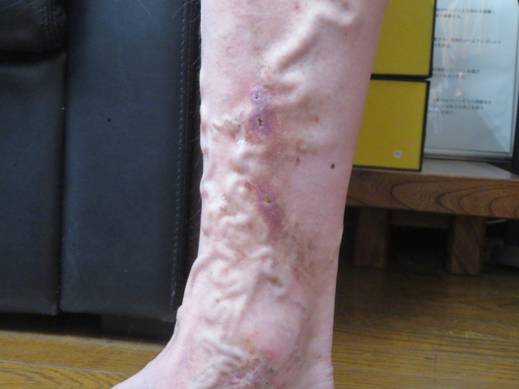 右足が大変なことになっていた。血管に血液が逆流するらしくて今にも血管が破れて破裂しそうなので病院に連れて行ったら重症なので専門の病院を紹介されカテテールを挿入する手術が必要だと・・・・