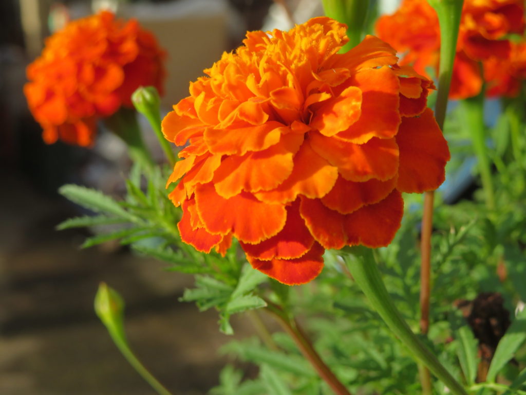 秋色に満ちたマリーゴールドとサルビア