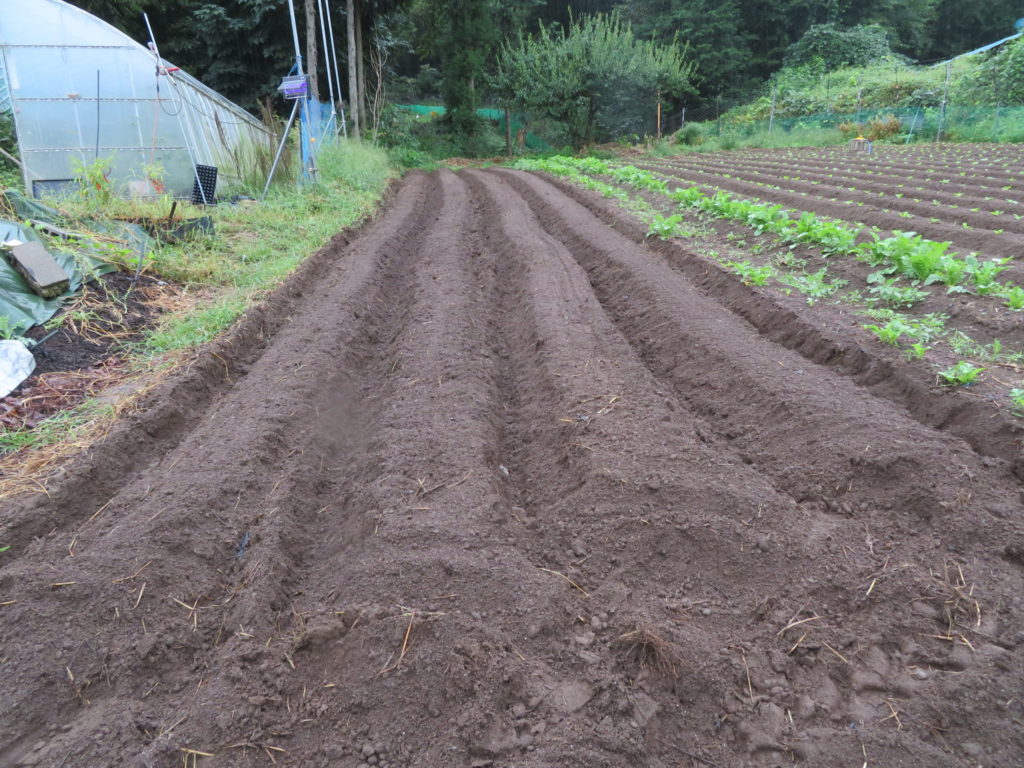 昨日、雨が途切れた瞬間を狙ってイチゴ畑だった場所に畝上げをした・・