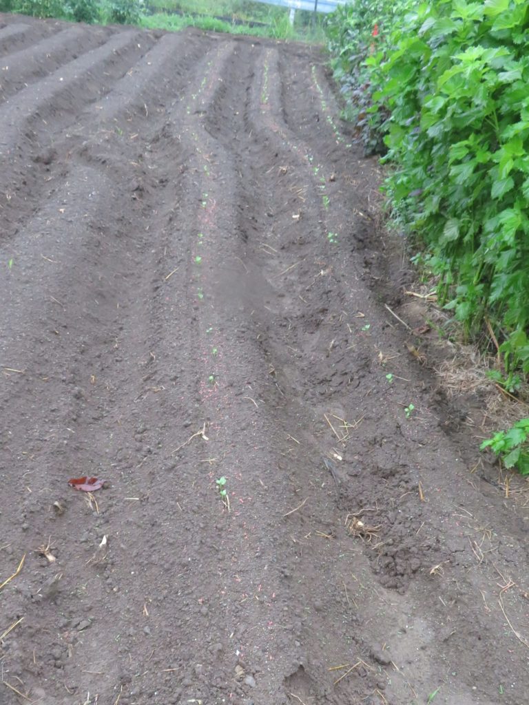 雨降る前に大根の種を蒔いていたら芽が出て来て生育が楽しみだ。