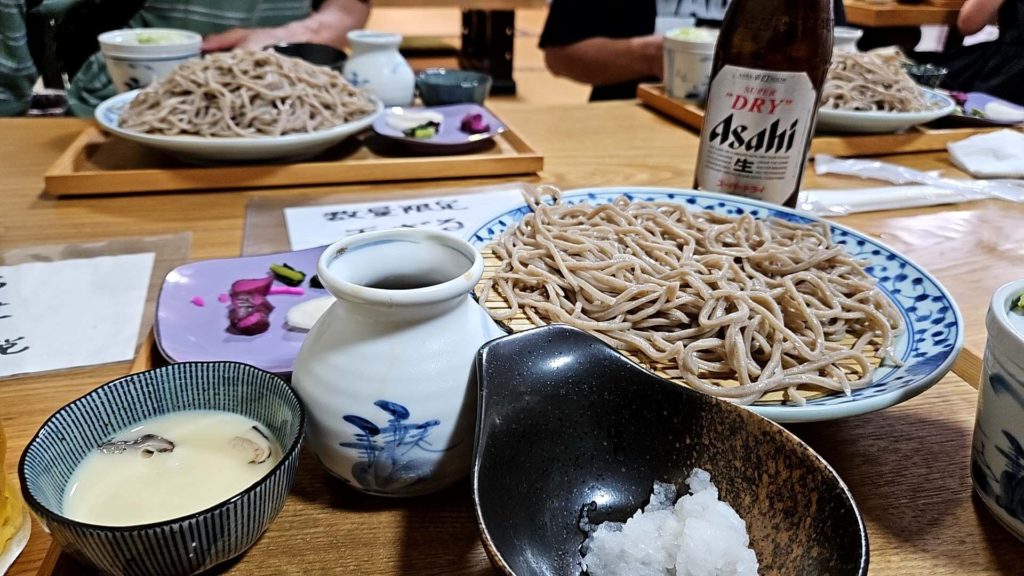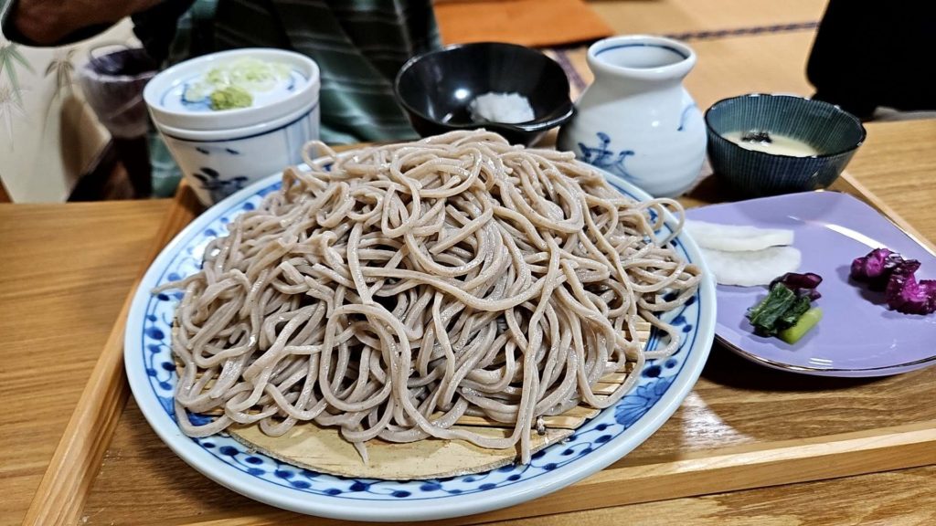 3時半過ぎたので蕎麦屋は閉店したのではないかと不安だったが、山の中の辺鄙な場所にポツンと蕎麦屋あり一組の夫婦がいて入店した、私は普通盛