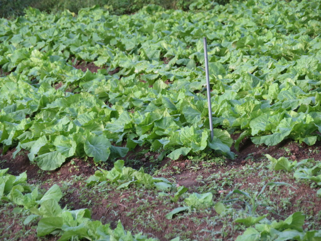 山桜の葉が紅葉を始め、秋野菜も気温の低と共に成長が進んでいて秋本番を思わせる。