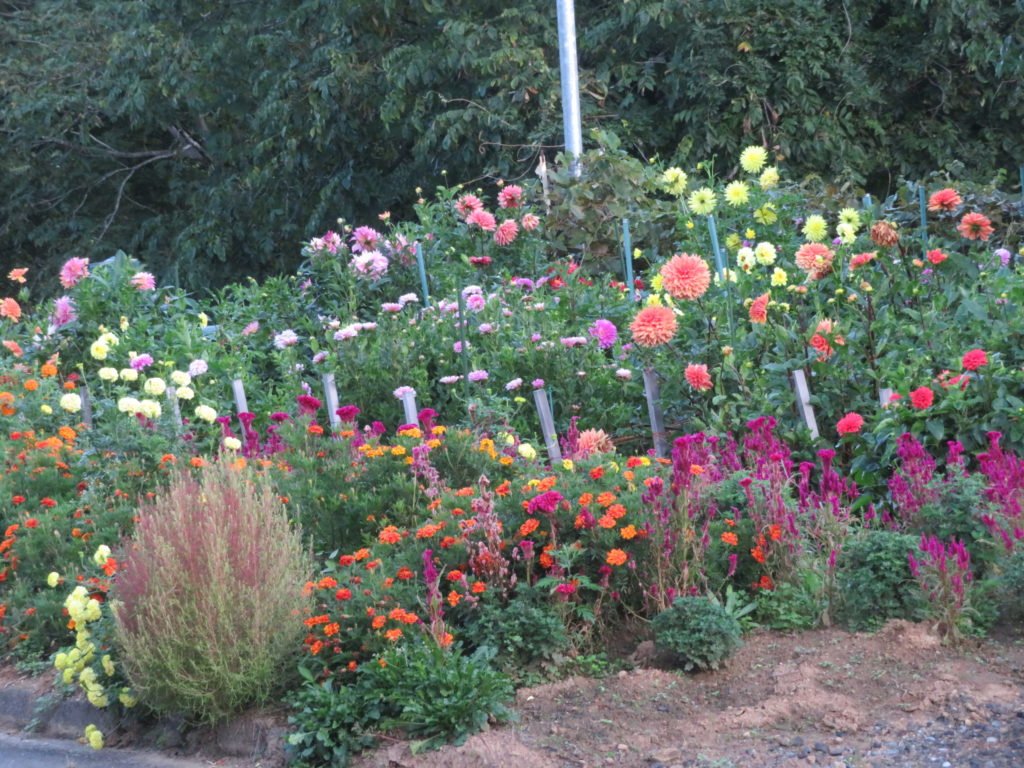 日中と夜の気温差が10度以上有るのでダリアも本来の濃厚な色彩だ。