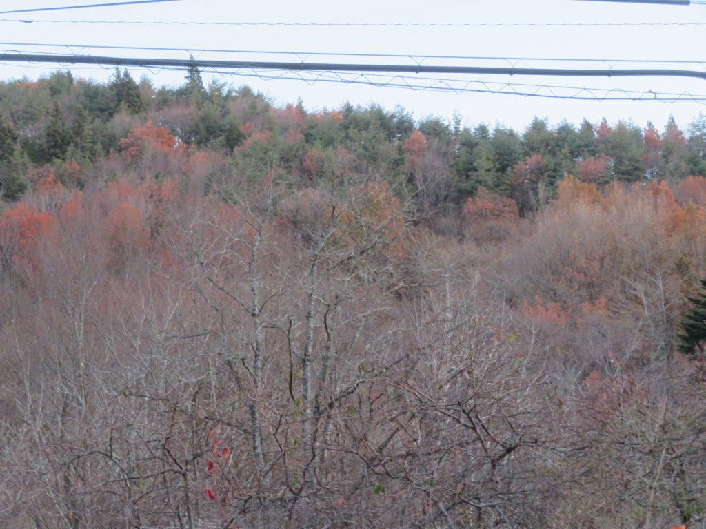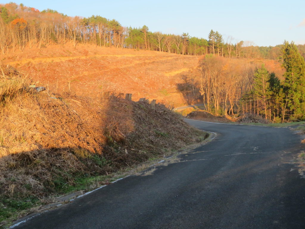 こちらは、村松牧場の裏側、数年前まで叔父さん夫婦が棲んでいた場所へ向かう道路脇の杉も伐採されていて未透視が良くなっていた。