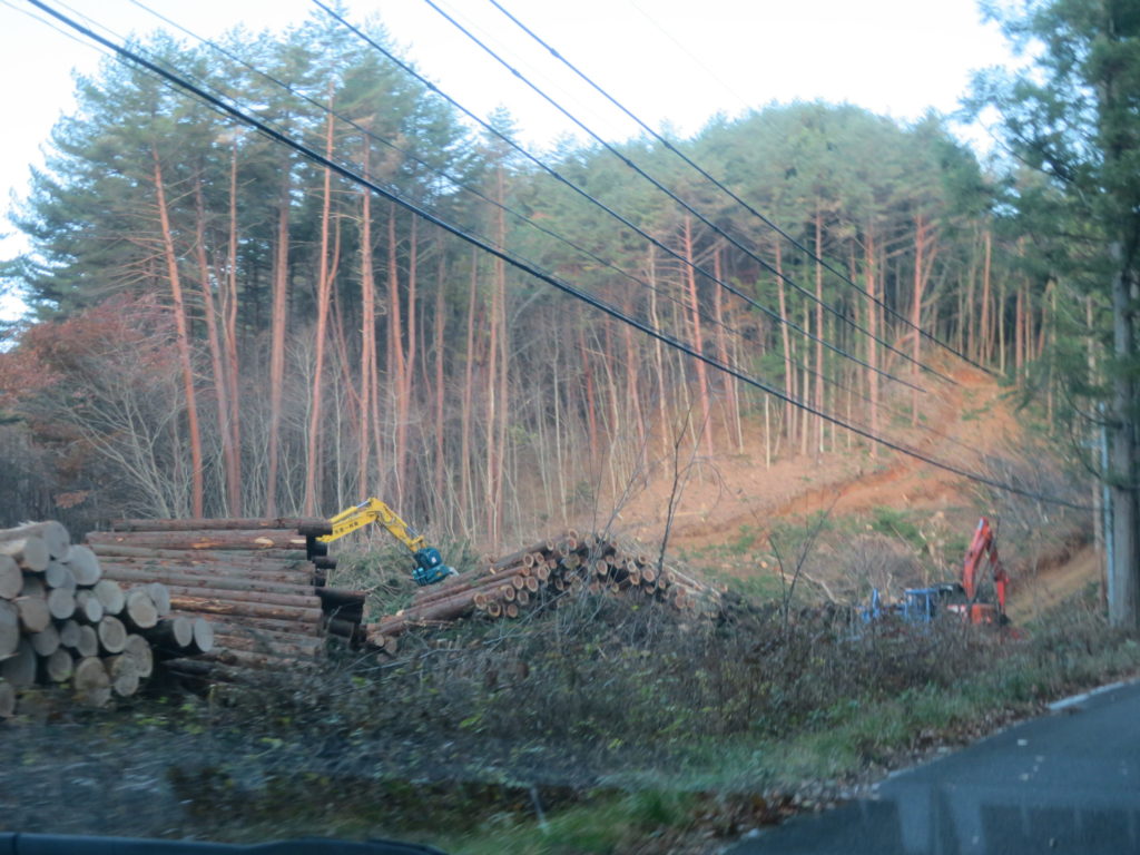私の家から数百メートル上に三叉路が有りその付近でも伐採が始まっている。