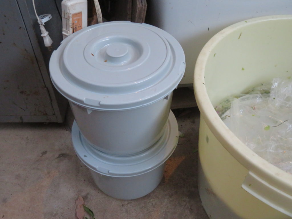 大きな樽に満杯詰めてオムシを載せて三日ほど置くとご覧の様に三分の一の量まで詰まるのだ。