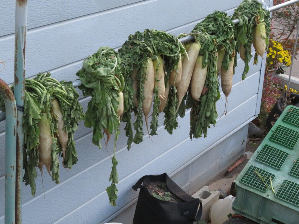 今後は生育不良な大根を干してあるので沢庵づりに挑むのだ。