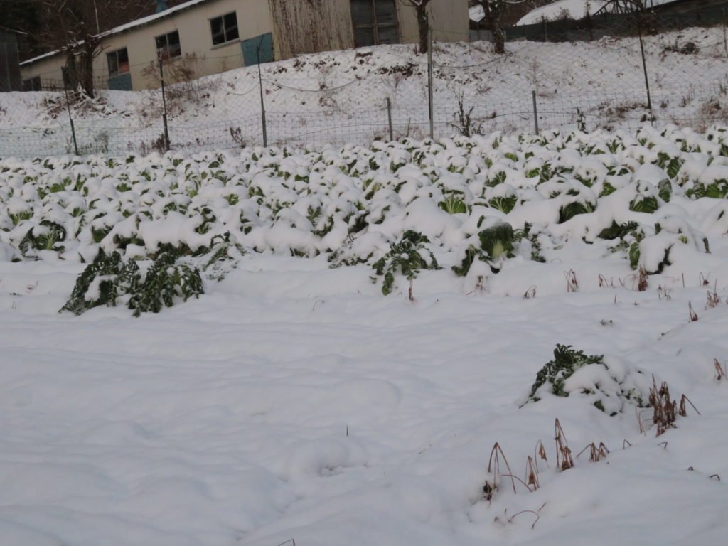 白菜は雪に埋もれてしまったが、寒さに当たると甘味が増すので収穫が楽しみだ。