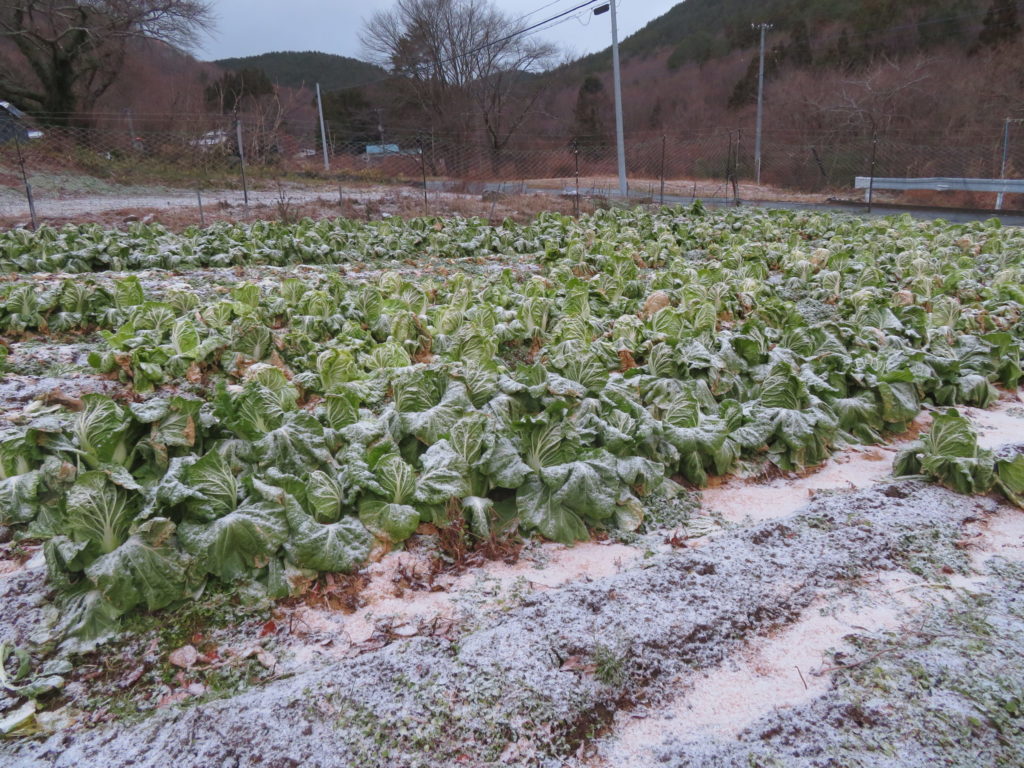 昨日も収穫したが、外葉が霜によって黄色く変色しているが、味は抜群