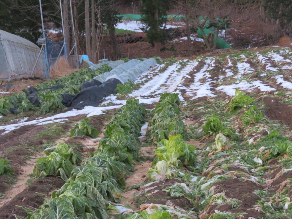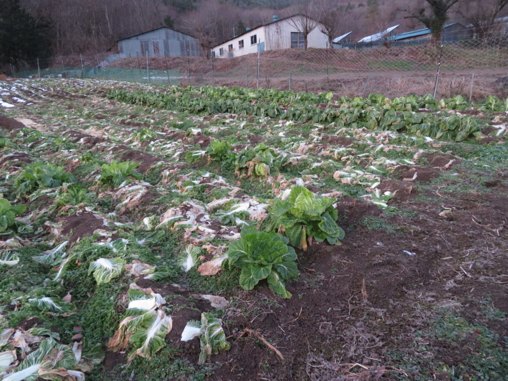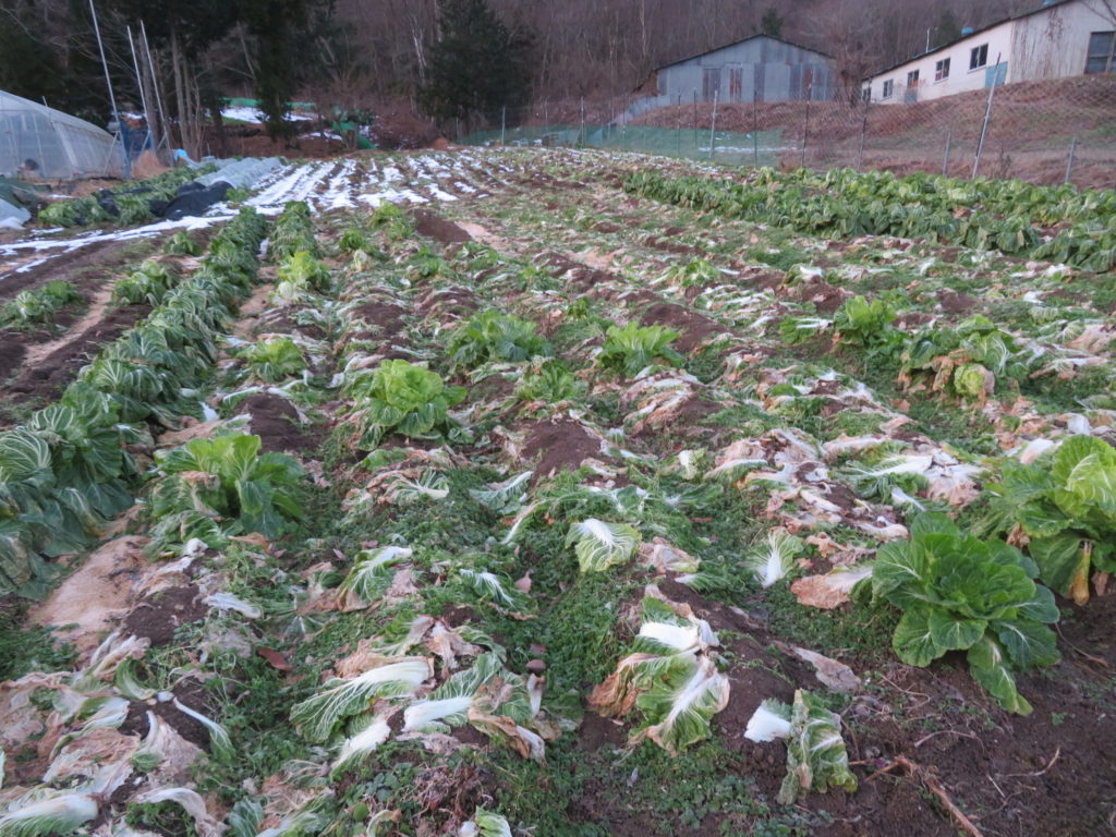 まだまだ沢山の白菜が残っていて、このままにしておくと葉っぱが寒さで枯れてしまうので京都アスラかけて保存用に収穫するのだ。