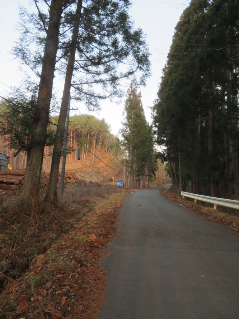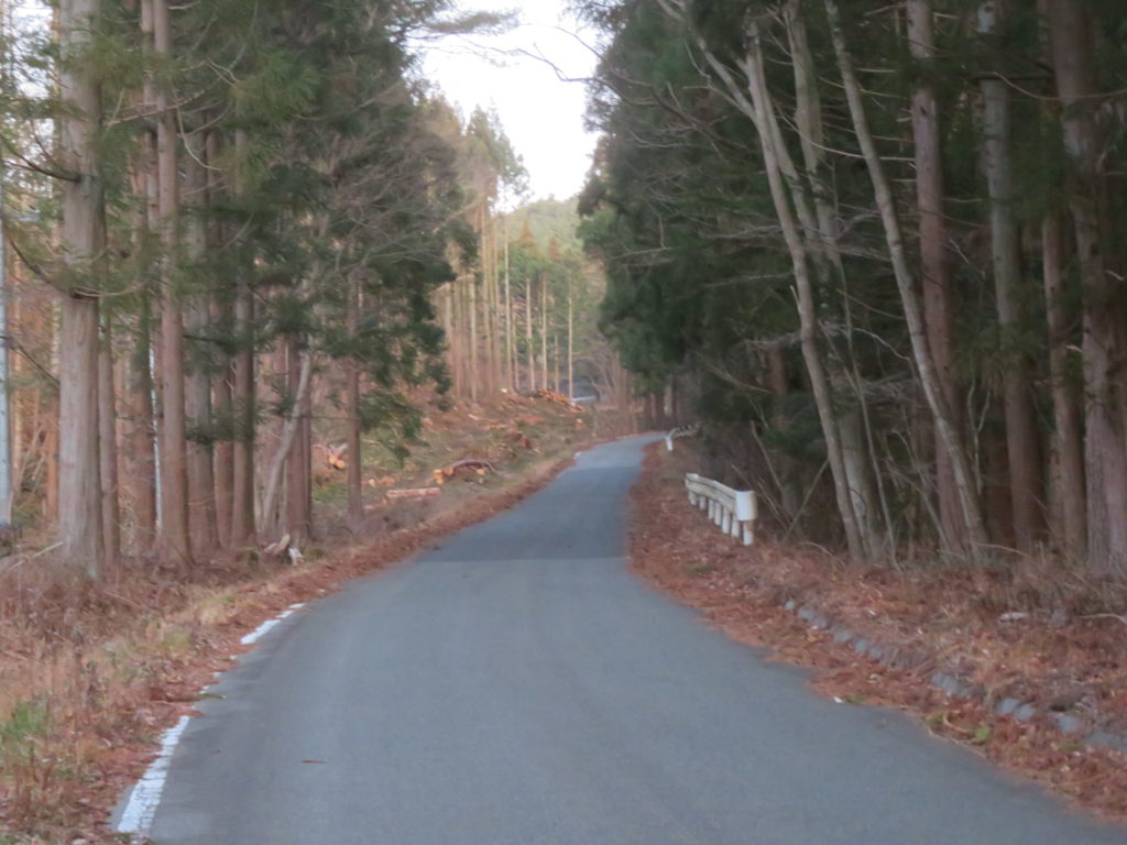 道路脇の杉の木が冬季に日光を遮断していたので急な上り坂は危険な道路として