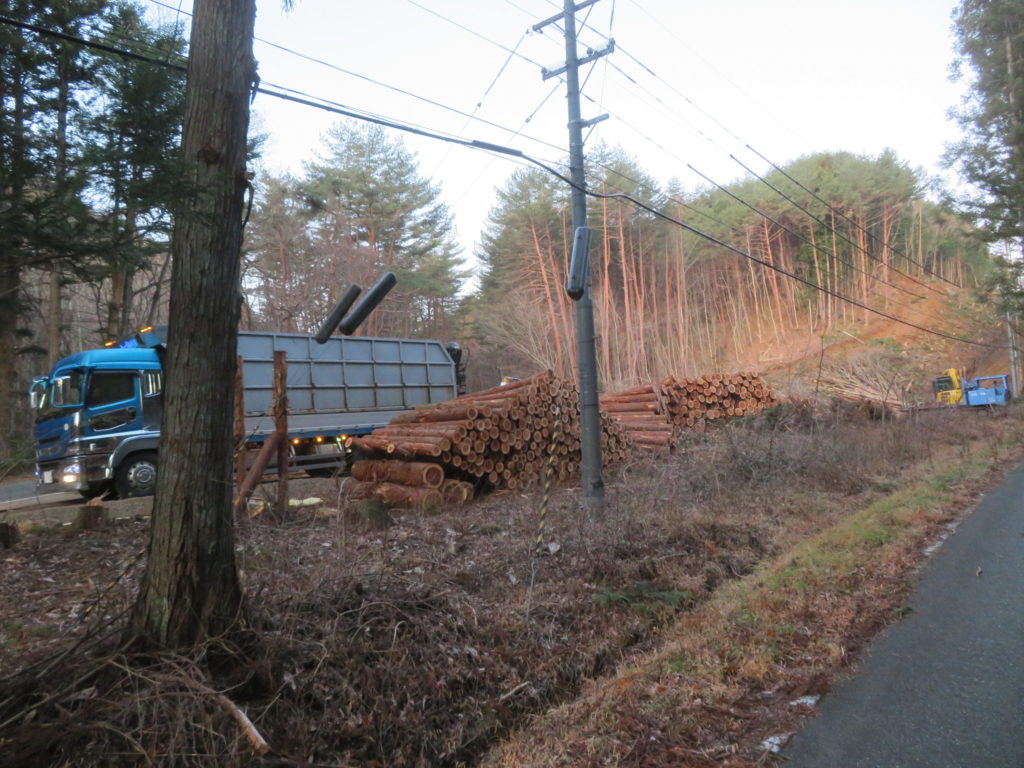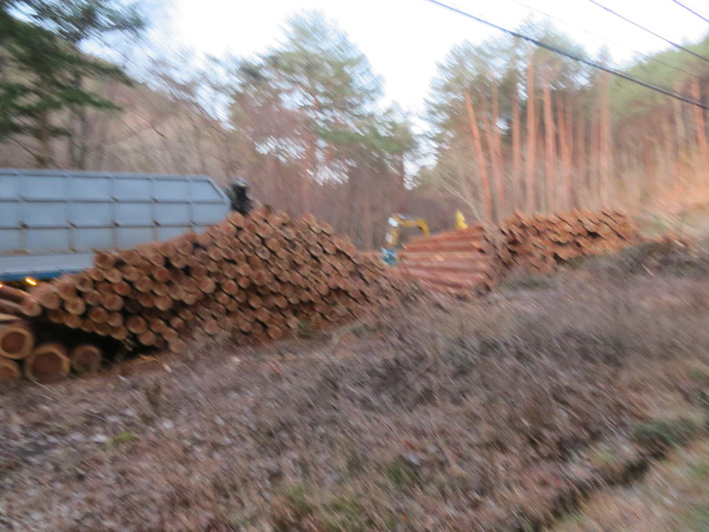 毎日、チェンソーので伐採する音がしていたので、今朝気になっていた伐採地を見に出掛けた。