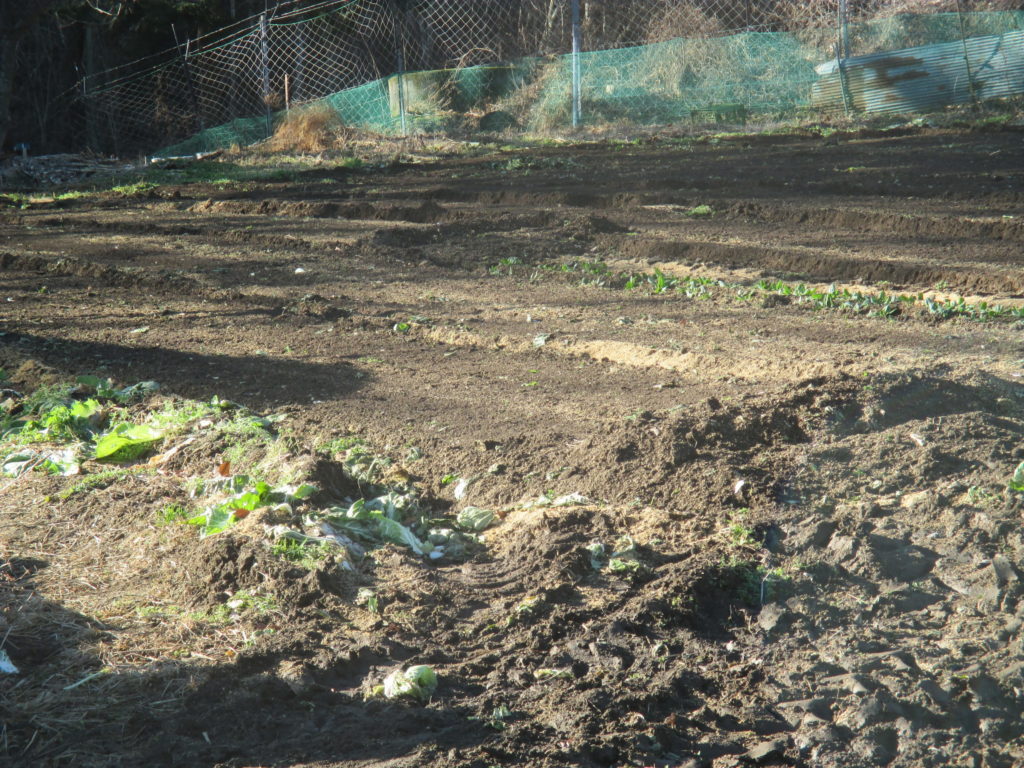 土曜日、全ての白菜と大根を全て収穫し、その後に畑をトラクターで耕運して来年作付けするトウモロコシの土作りの準備に入った。