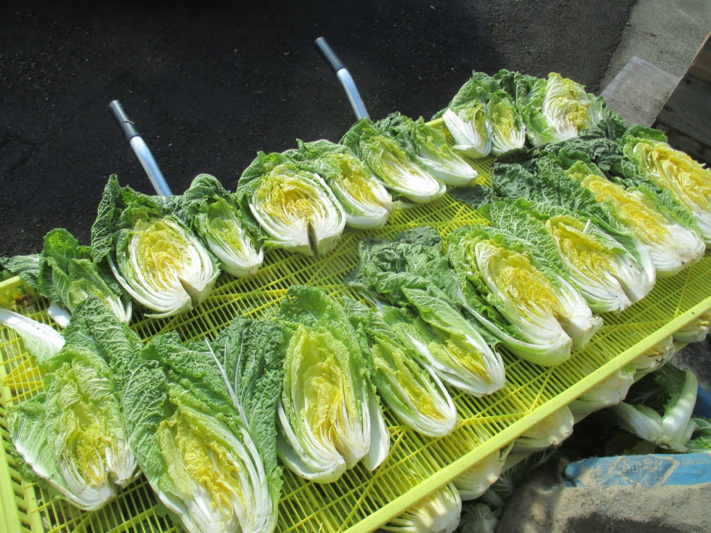 完璧に結球していない白菜を半分に割って天日干し・・・