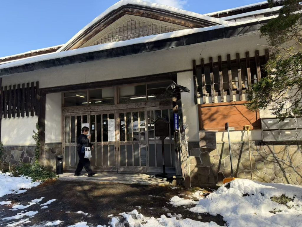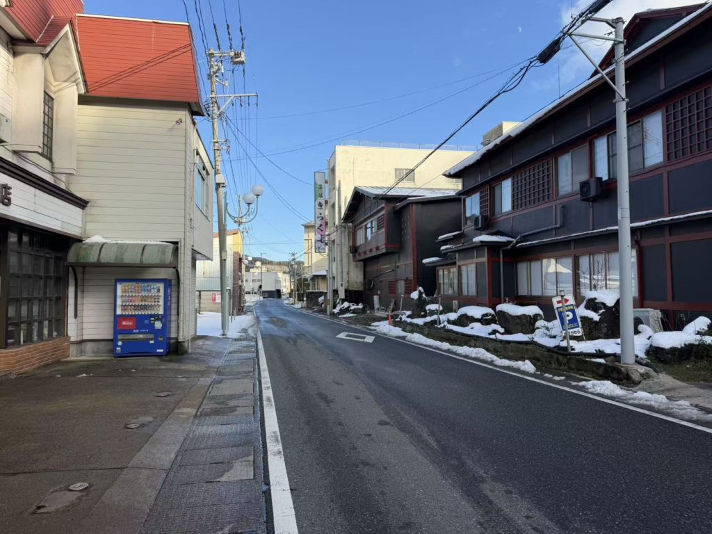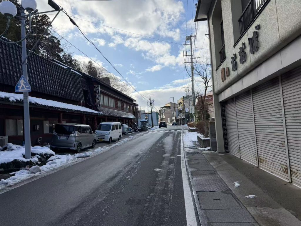 鳴子温泉は一昨日雪が降り積もった雪が残っていた。