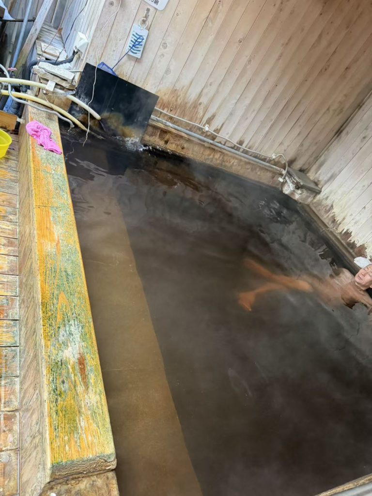 汚いと評判の悪い温泉旅館だが、風呂の黒湯が濃厚で効能が沢山ある薬湯に近く、素晴らしい温泉に浸かった。