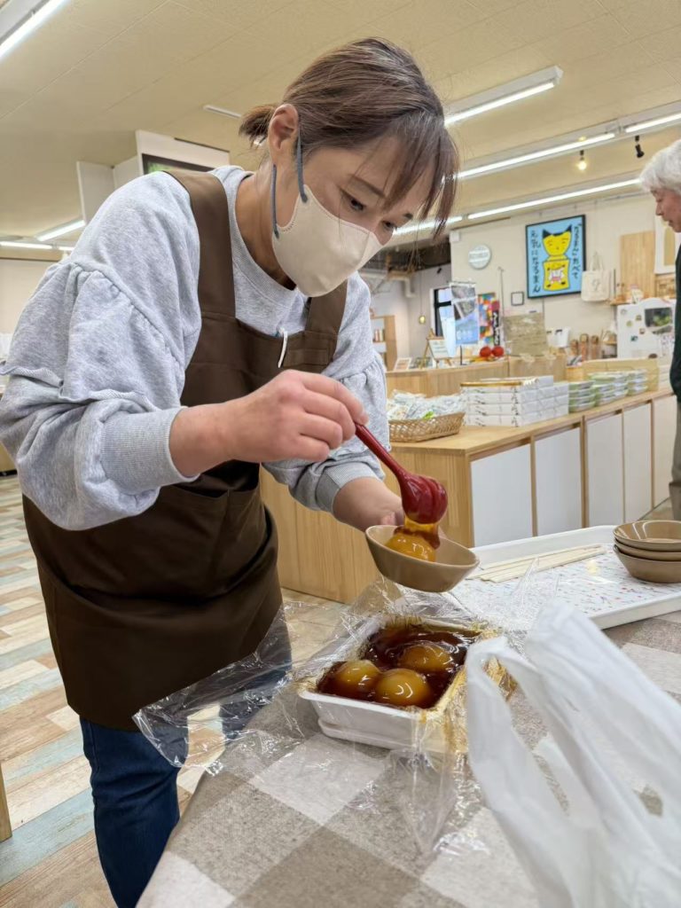 その後恒例の団子やさんで出来立ての栗団子を頂いた。