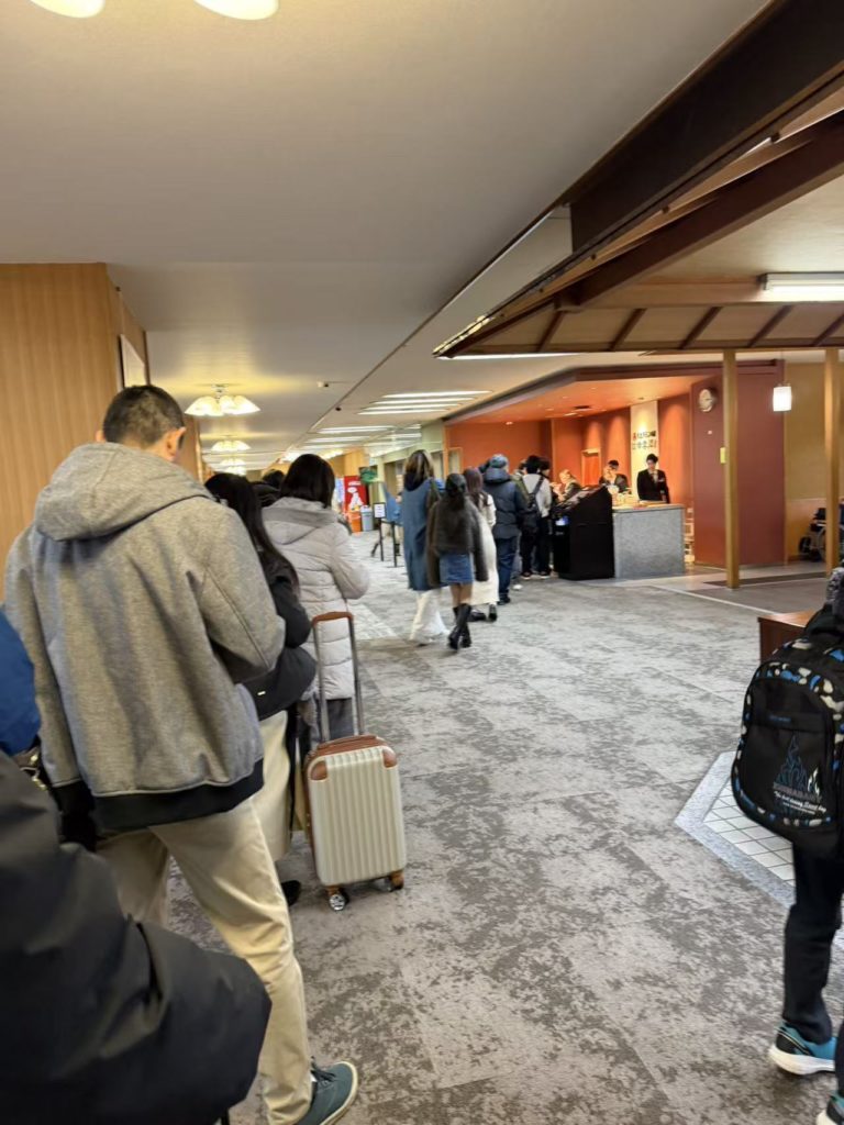 数日前にやっと取れたホテルだが、バイキングが売りのホテルなので若者や家族連れで大賑わいでチェックインに長い行列が出来ていた。