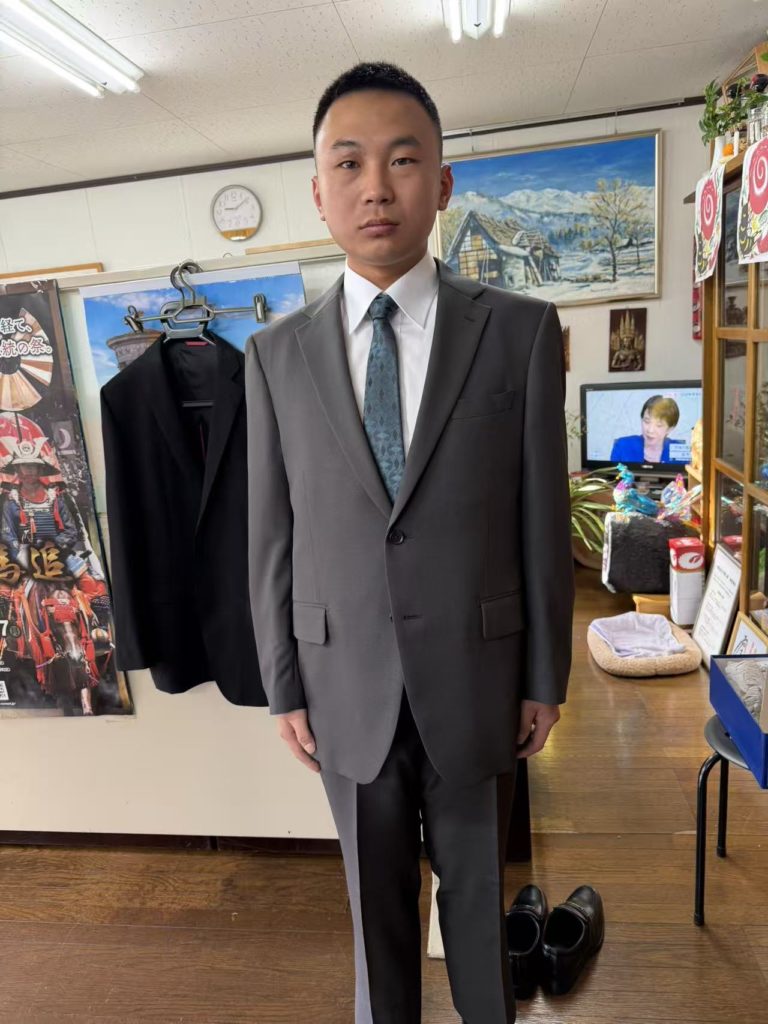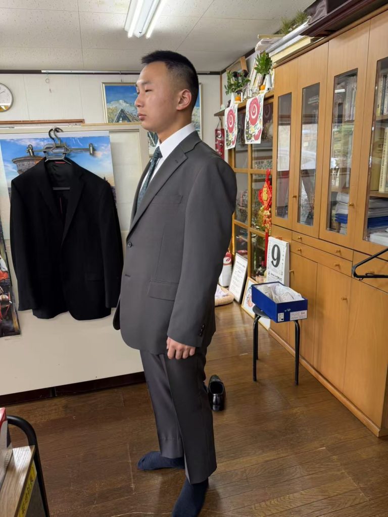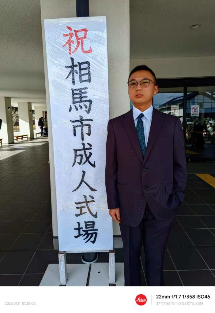 市役所からの招待状が届いたので日本での一生の思い出として参加させたかったので、スーツから革靴迄、安物だが全て新調してプレゼントした。