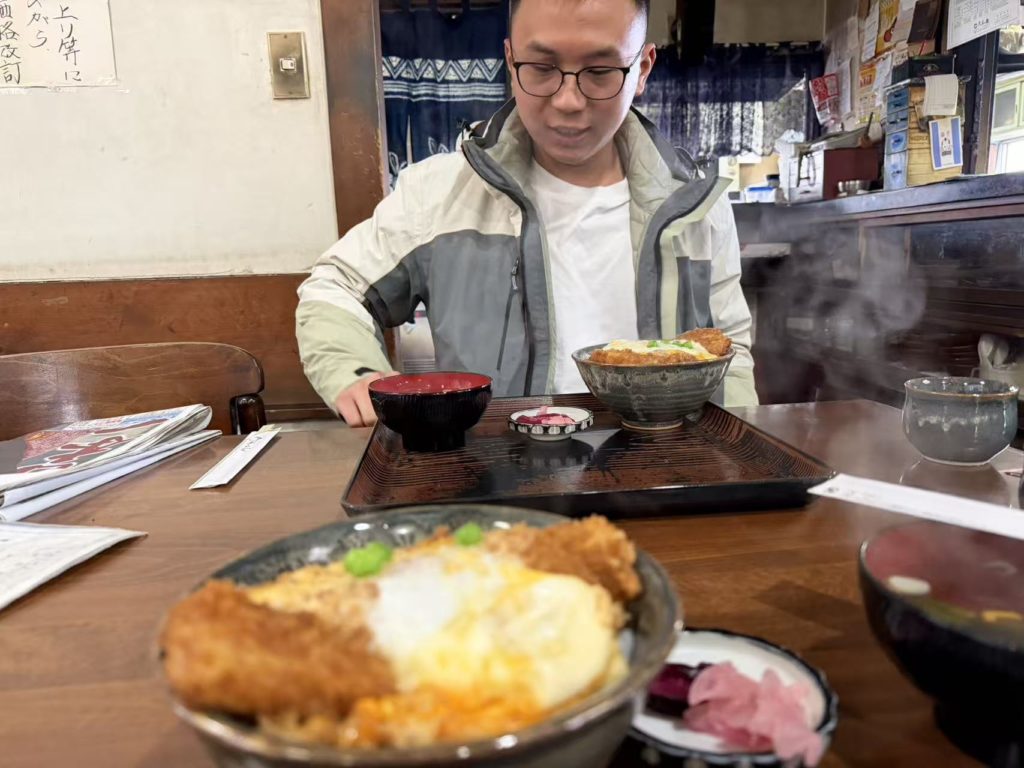カツ丼が大好きというのでカツ丼を食べて成人を二人で祝った。