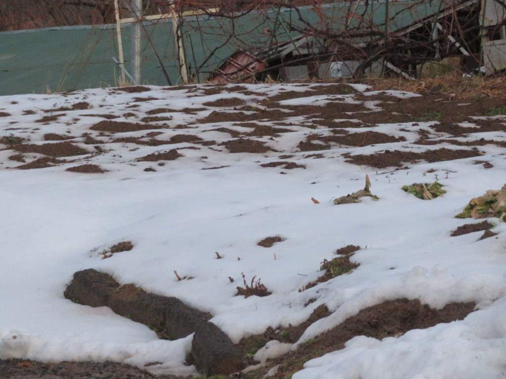 昨夜、季節外れの雨が降ったので北斜面の雪も解けている。
