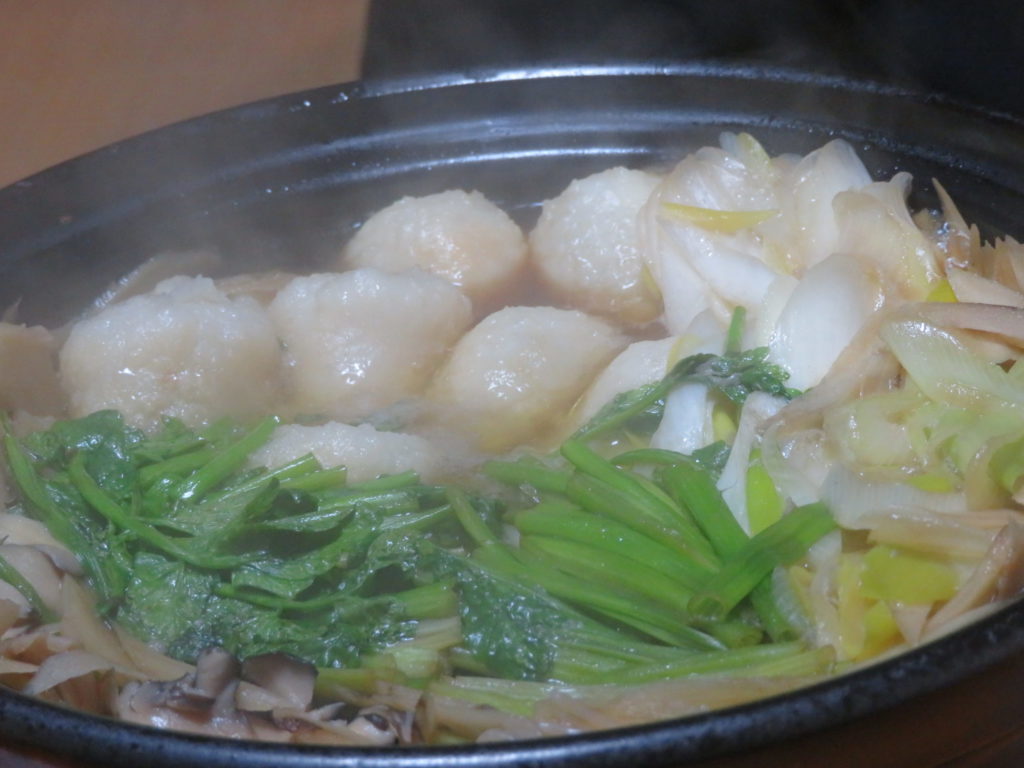 寒いので唐辛子を掛けて熱々の極上きりたんぽ鍋を息子と二人で頂いた。