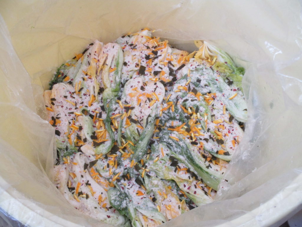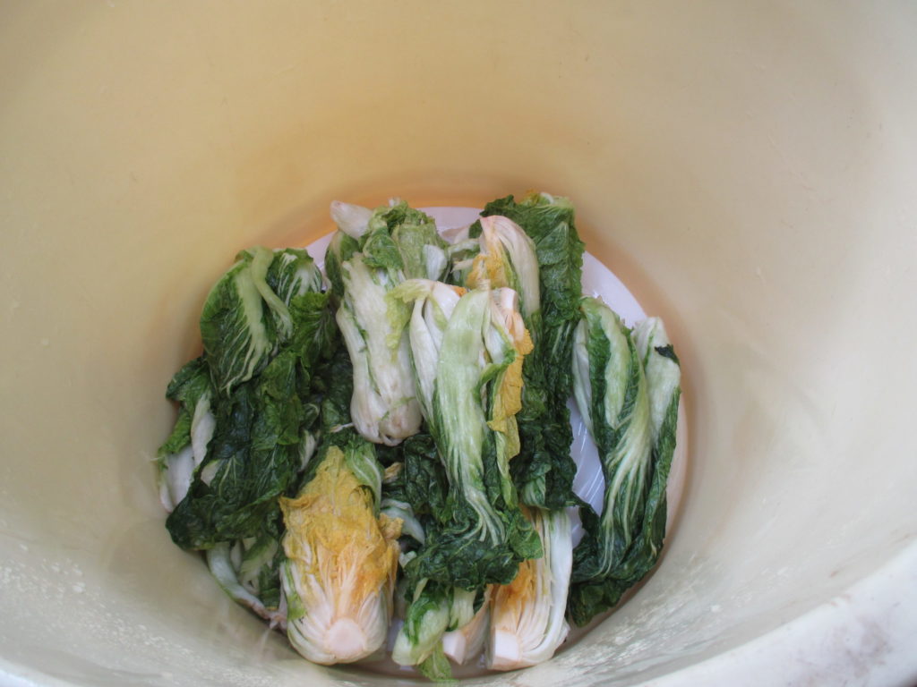 一度塩で漬け込んでから白菜から出て来た水分を搾り取って