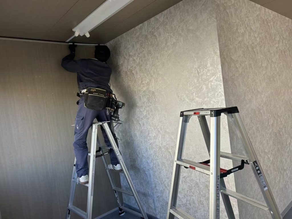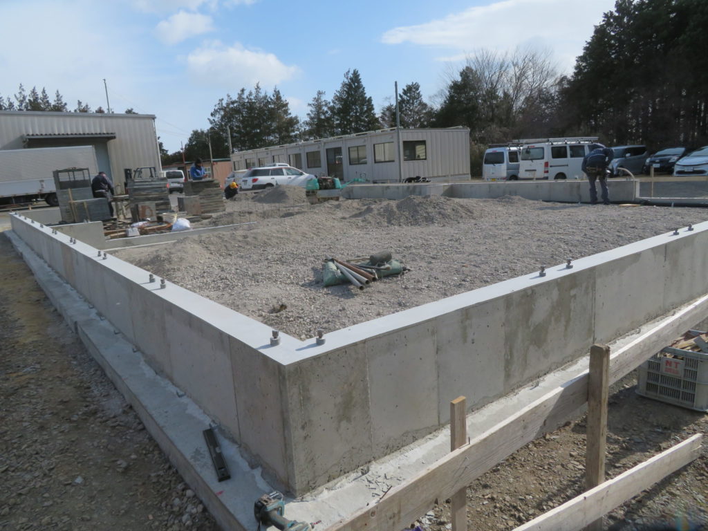 気温は3度だが体感温度はマイナス10度にも感じる中に基礎工事や電気屋・設備屋等が過酷な暴風の中モクモクと作業を続けていた。