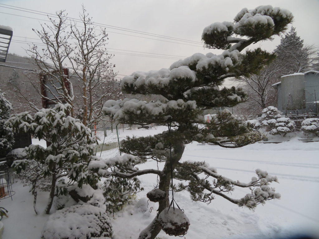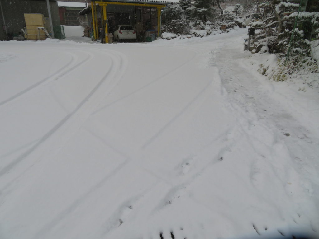 毎朝少しづつ雪が積もるが昼頃には融雪剤を撒いておくと消えていたが、今日はこれから未だ雪が降りそうなので弊社のトラックが11時頃に届くので直前に除雪する事にした。