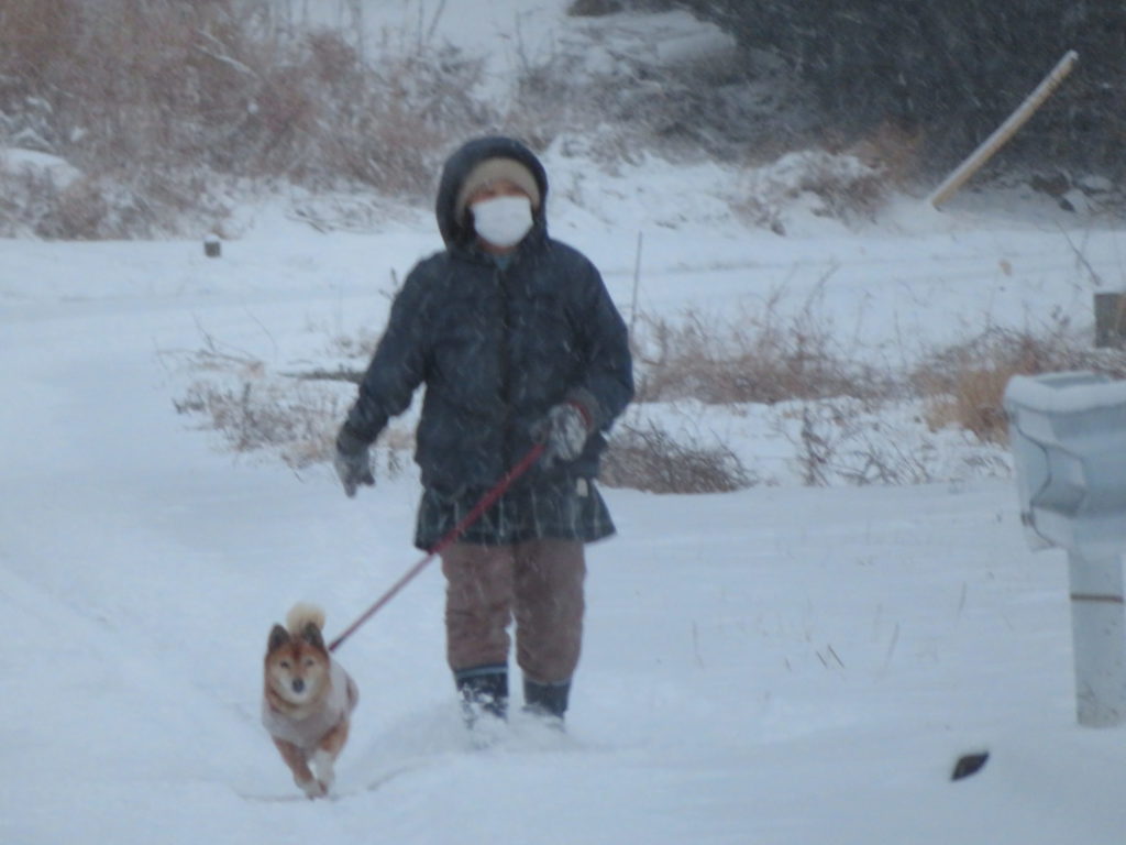 昨日は一日中真冬日で時折吹雪が舞っていて寒かったので雪解けは進まなかった。