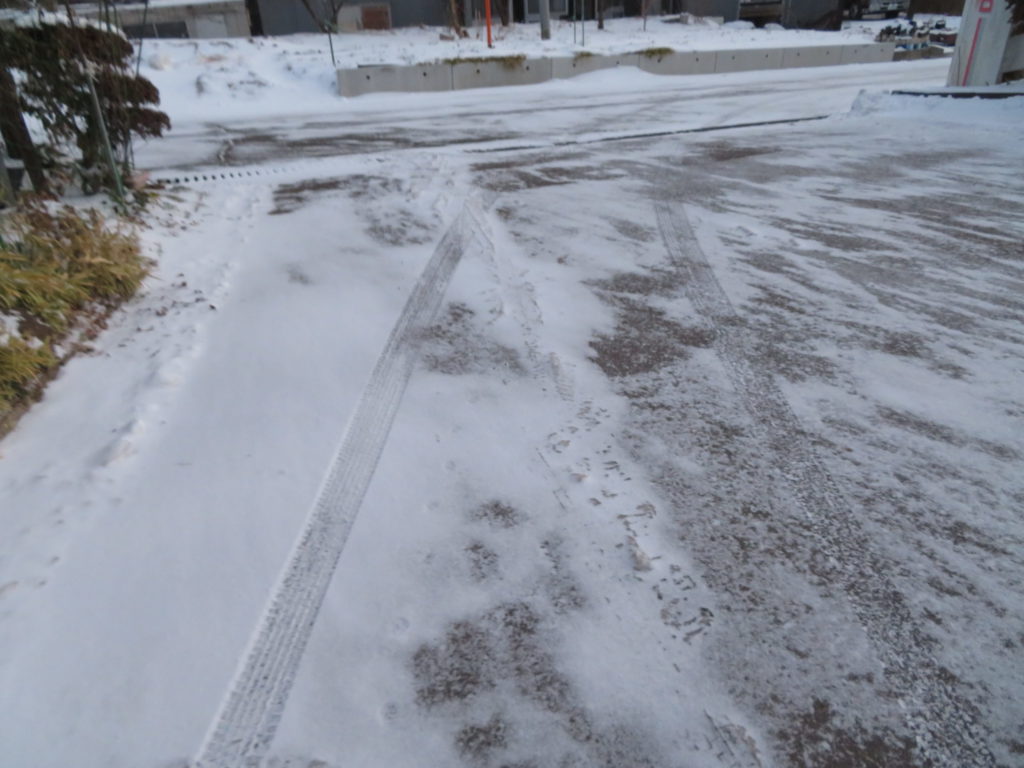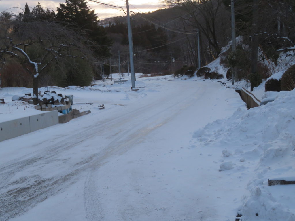 特に日陰では、昨日の朝の降雪が未だ殆ど残っている・・・