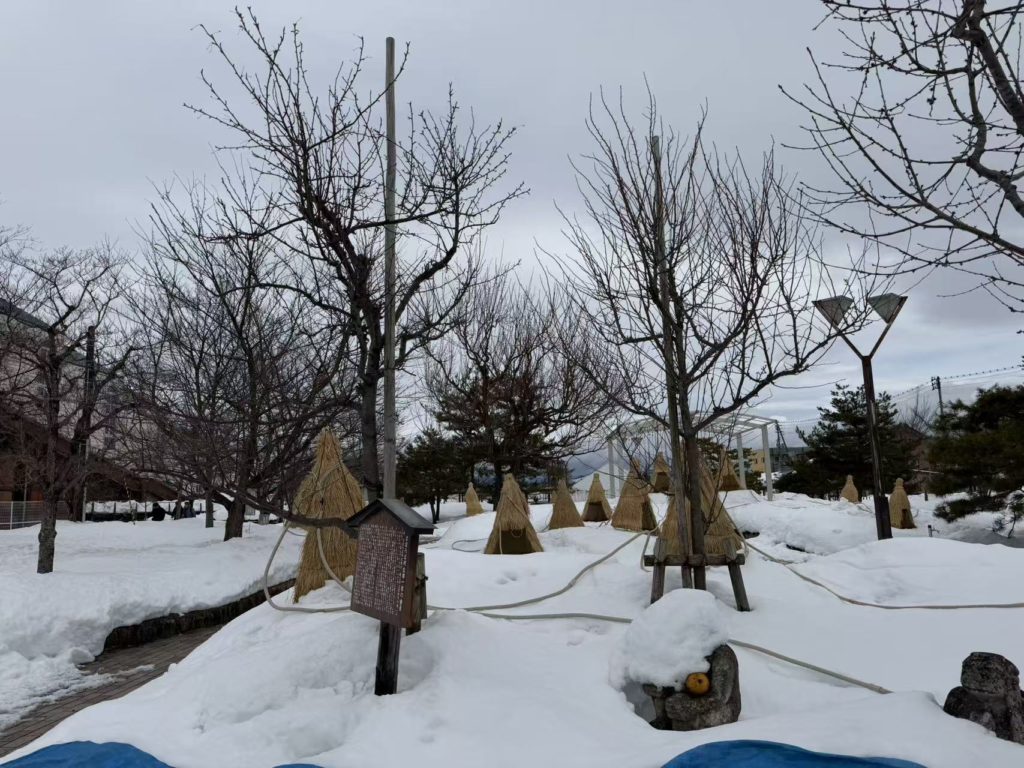 13~3日間にわたって開催されるとの事で、雪を掘ってボタンの花を飾る為に、藁コモを設置していた。