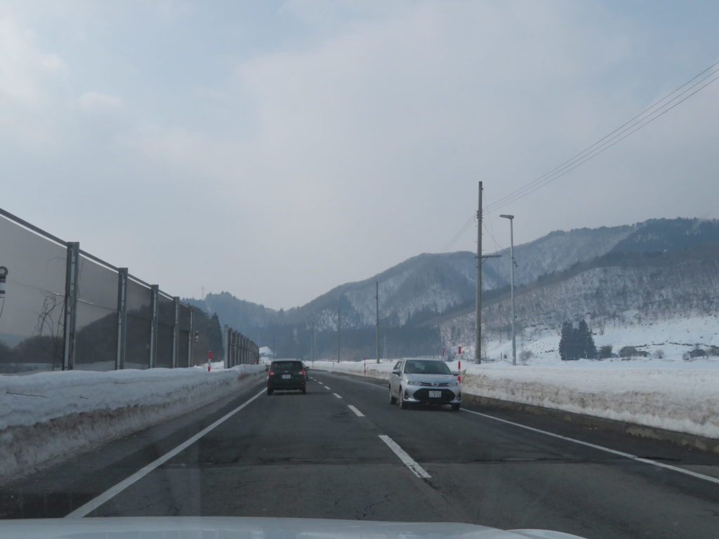 豪雪地帯の道路だが、除雪体制が整っていて路面には全く雪が無く快適だ。