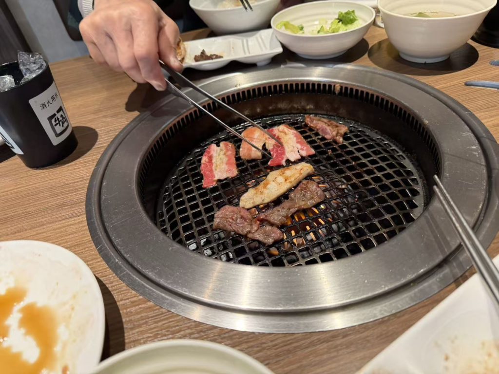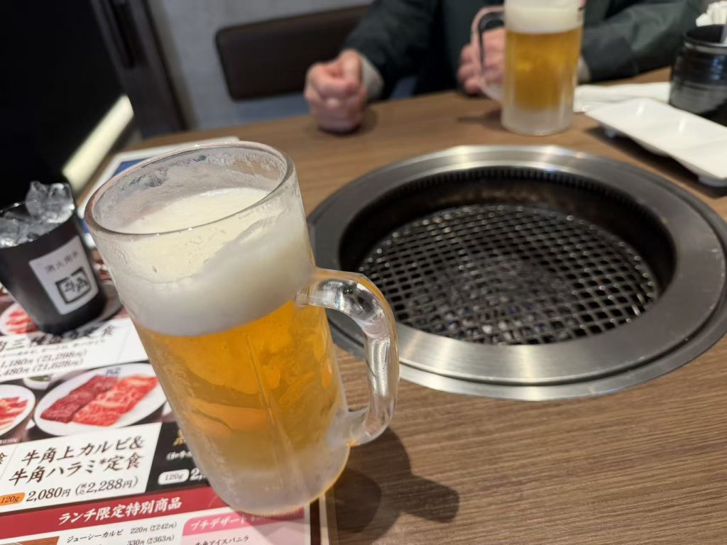 一番の楽しみだった真昼間の飲酒だが、諦めきれずにホテル脇の牛角で焼き肉とビールを頂いた。