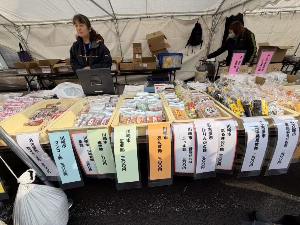 途中、直売所やスーパー等に立ち寄って飴っこ市の会場直ぐ脇の駐車場に車を停めて飴っこ市散策だ。