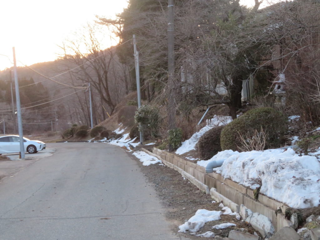 北向きには名残の雪が未だ残っている。