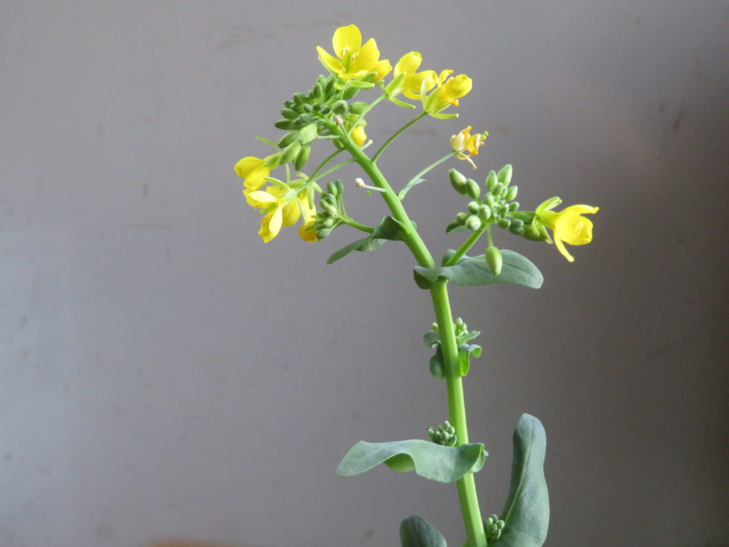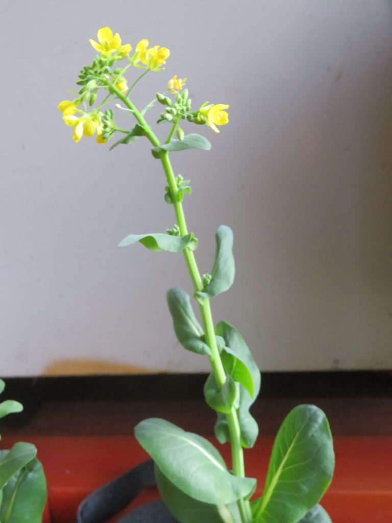 事務所内に植えていた野菜が菜の花を咲かせている。