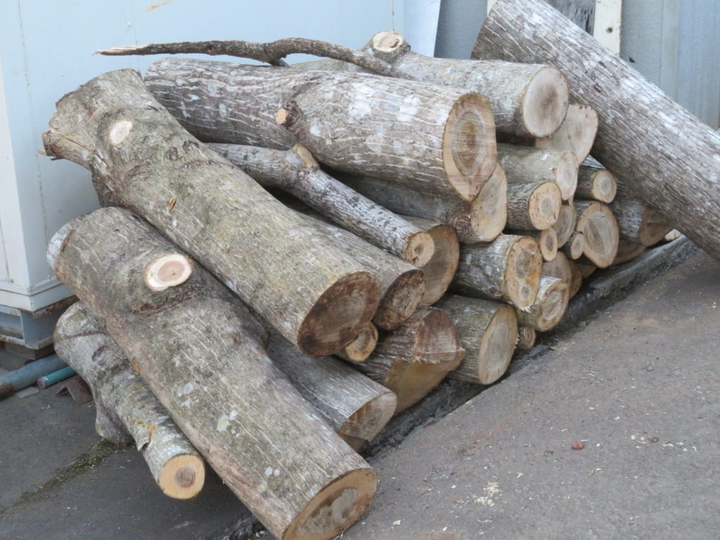 こちらは、クルミの木、ナメコを植える為の原木だがふと育っていたので取り回しが大変だった。