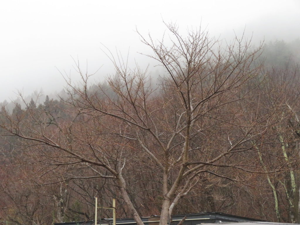 山の上には雨雲が掛かっている。