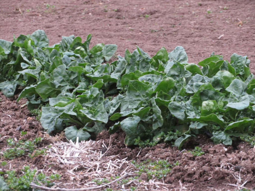 手前のグリーンの植物は、11月に蒔いたほうれん草