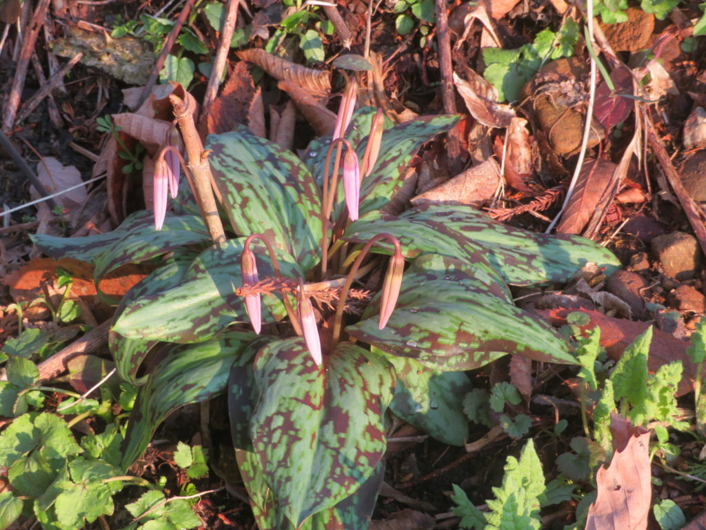 カタクリも咲いているのだが、太陽が昇らないと花を広げてくれない・・・。